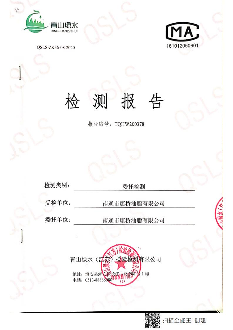 南通市康橋油脂有限公司5月份環(huán)境檢測(cè)報(bào)告