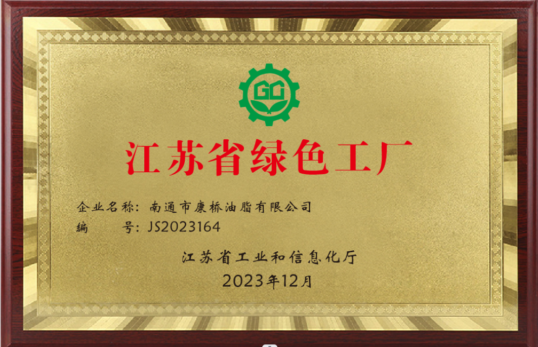康橋油脂榮獲“江蘇省綠色工廠”榮譽稱號
